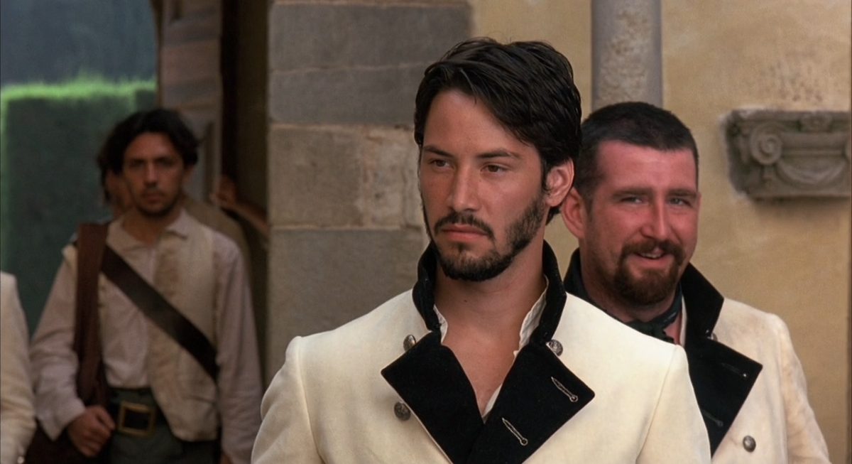 Based on one of the most incendiary and controversial works of classic literature, Stephen Frears’ brilliant adaptation of “Dangerous Liaisons” features one of the best ensemble casts of any film in the 1980s. Glenn Close earned an Academy Award nomination for Best Actress for her performance as the seductive aristocrat Marquise de Merteuil, and John Malkovich did some of the best work of his entire career as her ruthless rival, Vicomte de Valmont. However, Reeves was still quite memorable as the charismatic young man Le Chevalier Danceny, who begins to court the haplessly innocent maiden Cécile de Volanges (Uma Thurman).