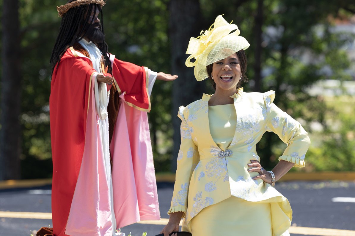 Trinitie Childs (Regina Hall) playing the part of the quintessential devoted wife who stands by her man no matter what, works with the documentary crew that her husband, the โfallenโ pastor Lee-Curtis Childs (Sterling K. Brown) has hired to help him with his much controversial comeback. The pastor-first lady duo is seen struggling to get their church, Wander to Greater Paths, to open back up and for Lee-Curtis to redeem himself after the ordeal of him facing sexual misconduct allegations by several of his congregants.